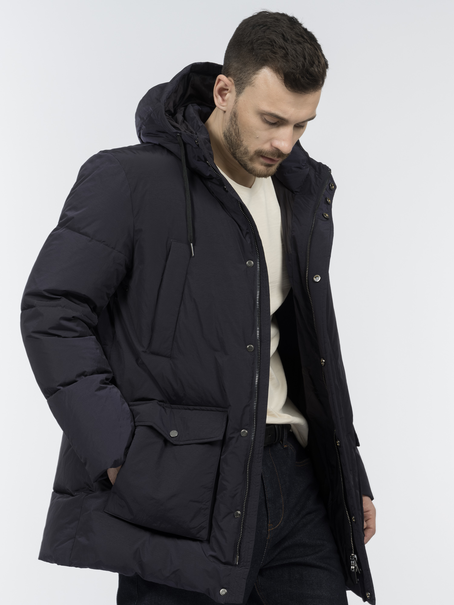 Базовый темно-синий цвет сочетается с нейтральными цветами, а также с насыщенными и яркими оттенками. Индекс упругости пуха 630-650 - это показатель натуральных наполнителей премиум-класса.