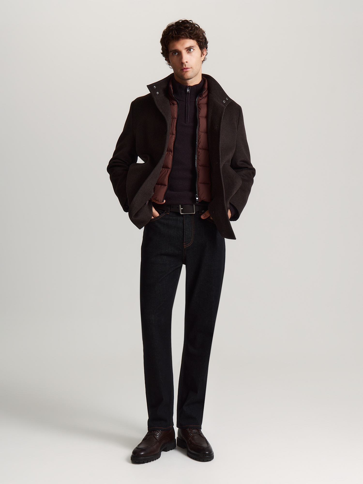 Верх:Овечья шерсть - 55%, Полиэстер - 35%, Вискоза - 10%.Подкладка:Полиэстер - 55%, Вискоза - 45%.Утеплитель:Полиэфир - 100%