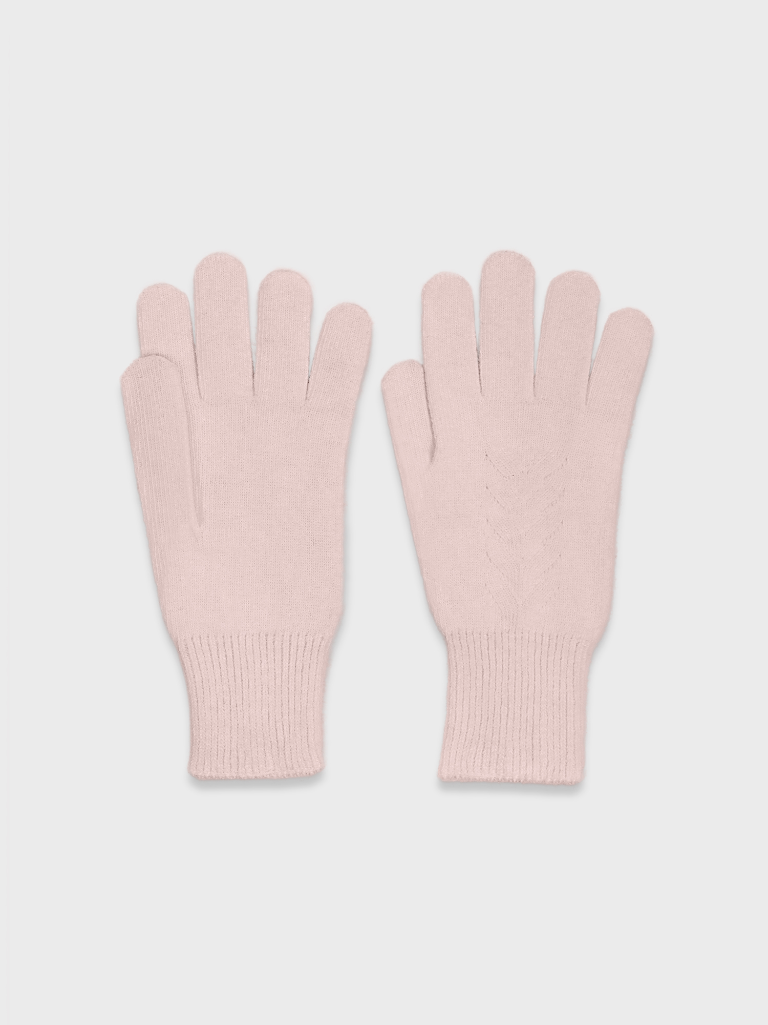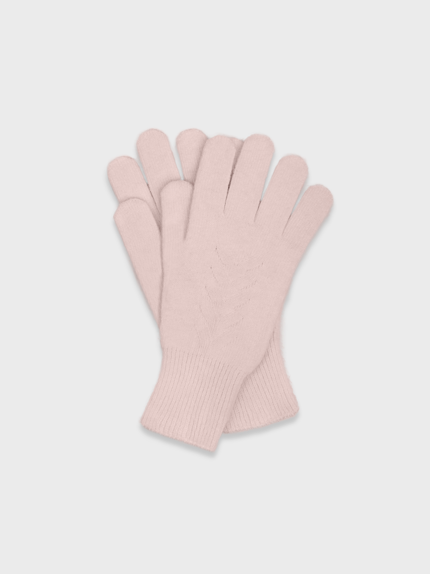 Вязаные перчатки розового цвета из мягкой пряжи с добавлением ангоры. Модель гладкой вязки, изящно облегающая кисть, декорированная по центру широкой косичкой. Составят комплект с вязаной шапкой и шарфом из той же коллекции.
