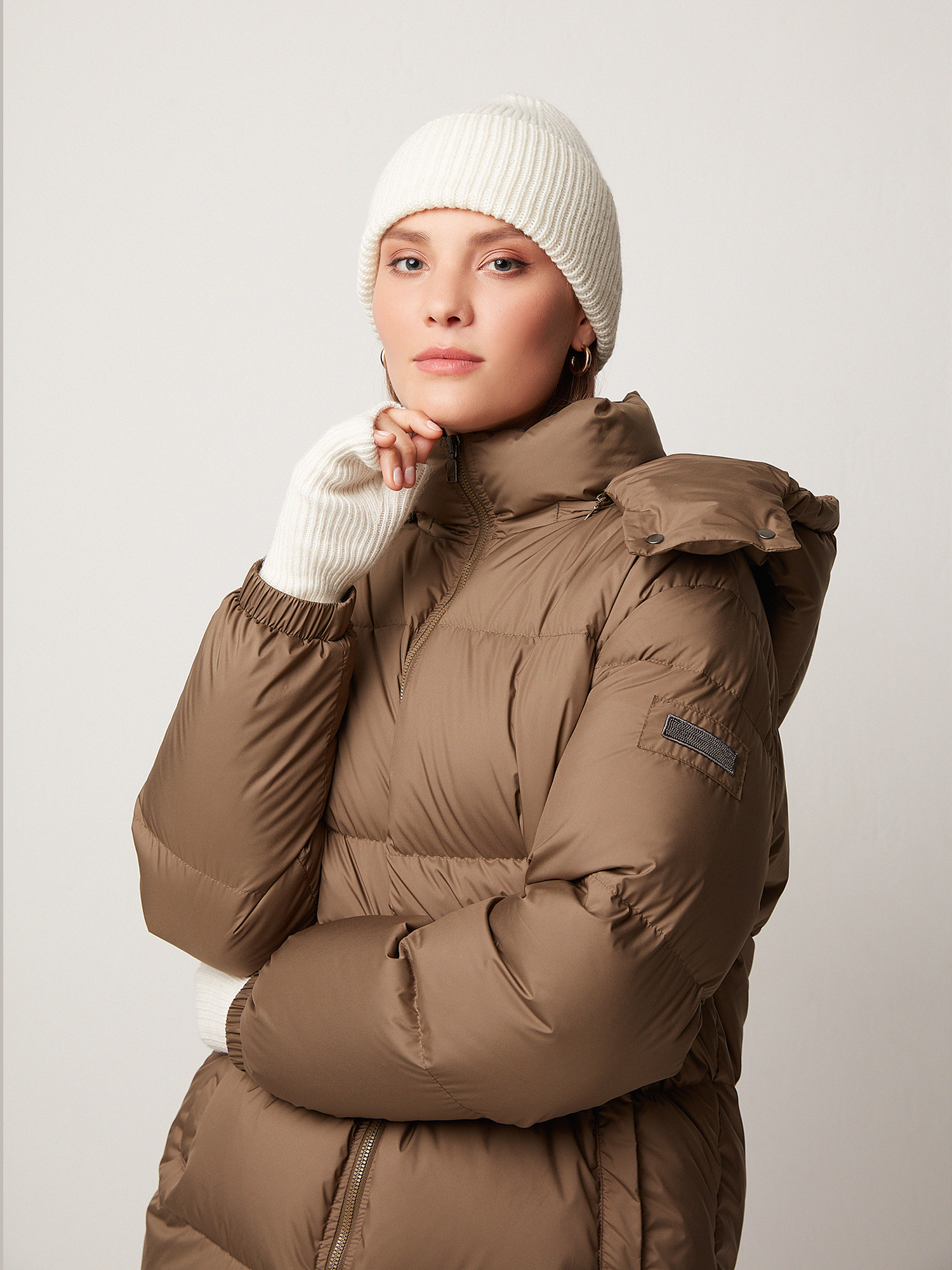 Трикотажная  шапка из тёплой миксовой пряжи на основе овечьей шерсти и альпака.  Модель нейтрального молочного оттенка связана гладкой вязкой мягко облегает голову. Аксессуар хорошо сочетается с шарфом и перчатками из той же коллекции.