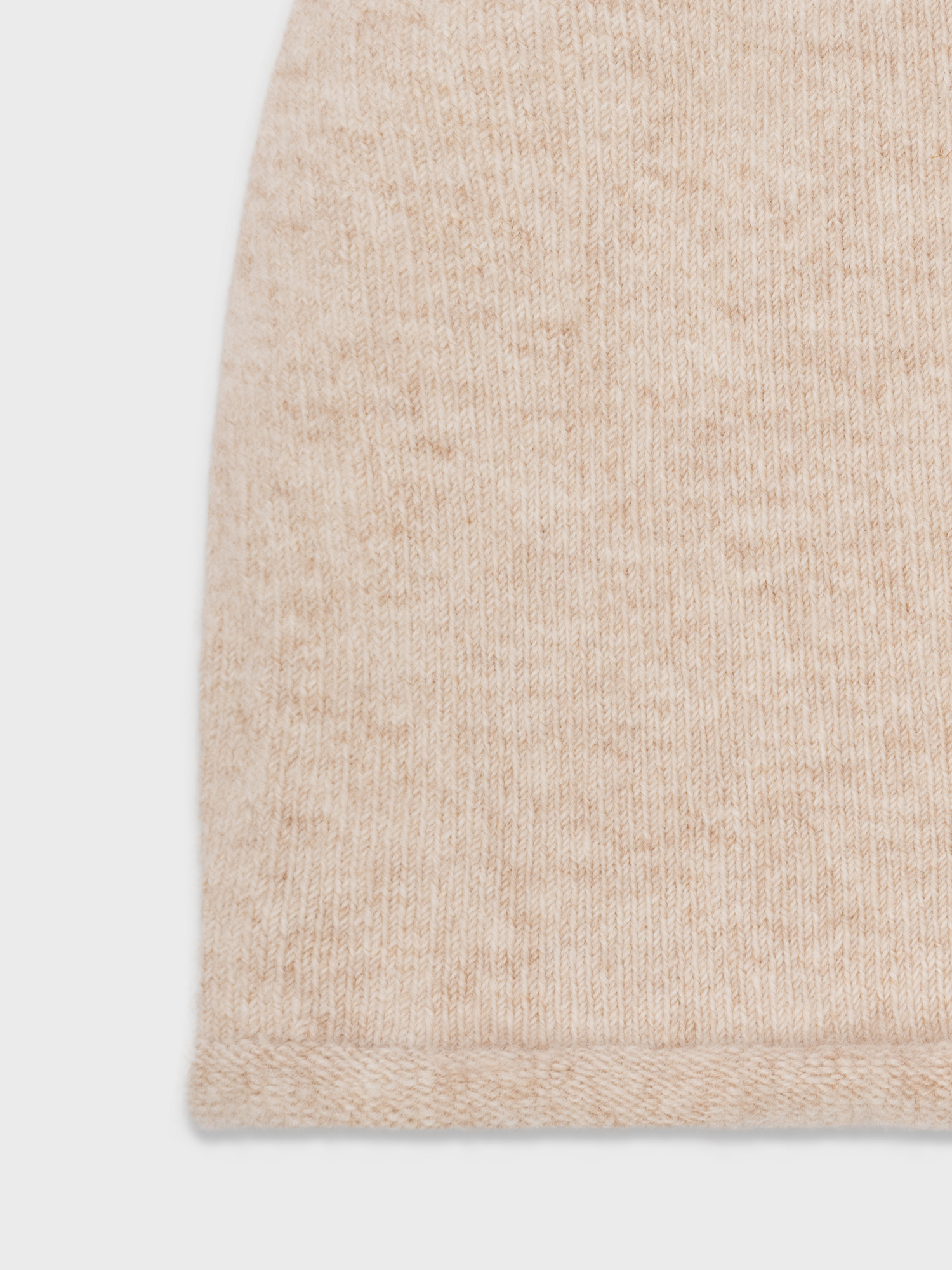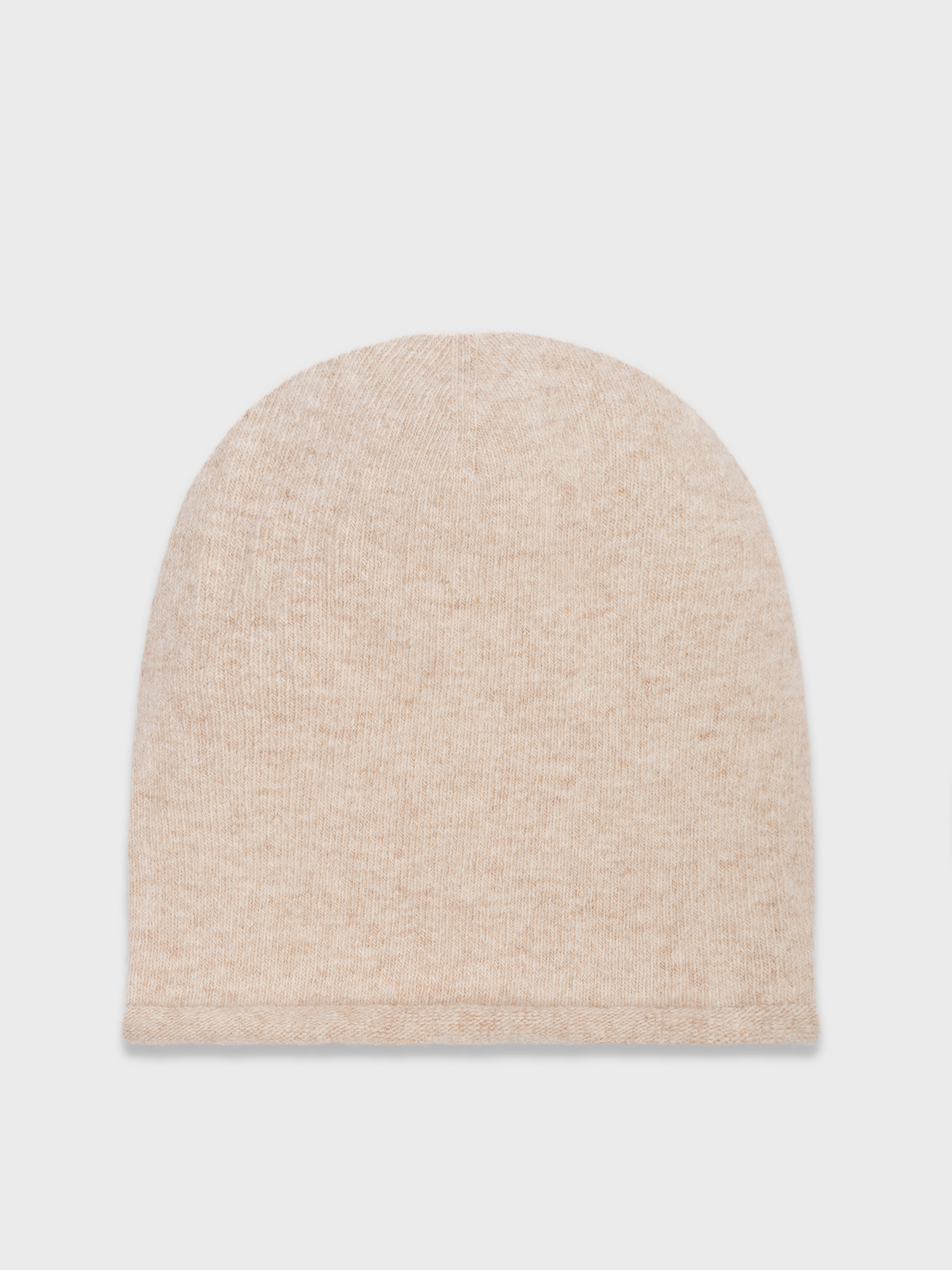 Вязаная шапка из тёплой миксовой пряжи на основе овечьей шерсти. Модель нейтрального бежевого оттенка гладкой вязки хорошо сочетается с шарфом и перчатками из той же коллекции.