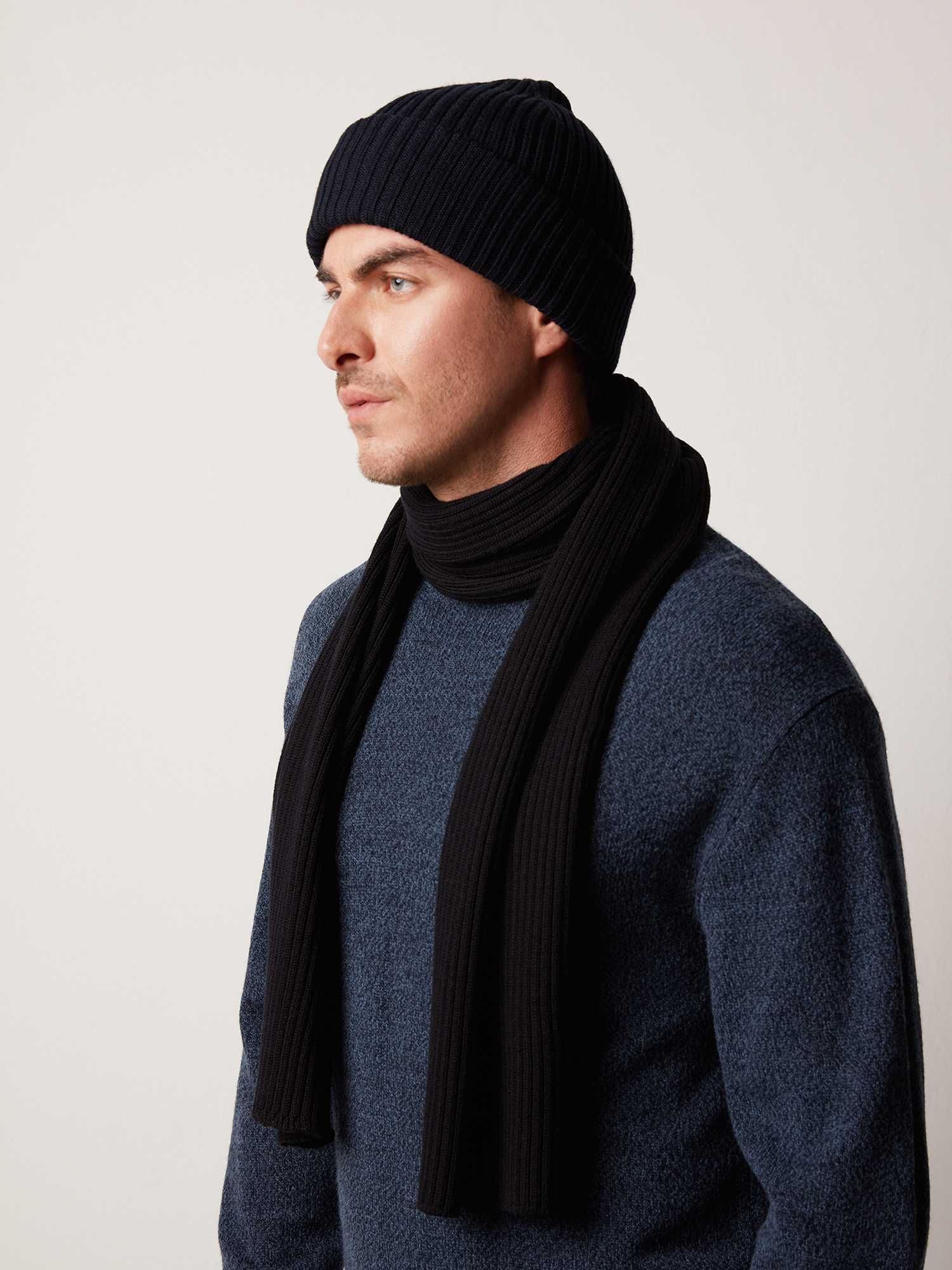 Шарф  из шерсти мериноса. Модель черного цвета.  В комплект к шарфу подходит шапка из коллекции.