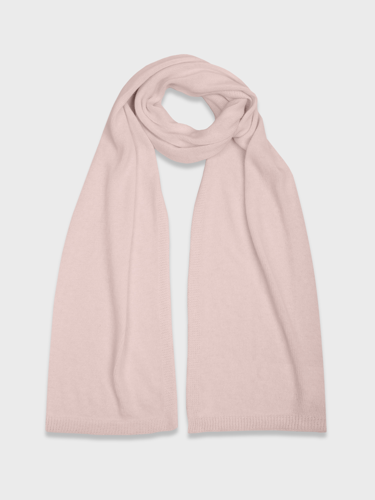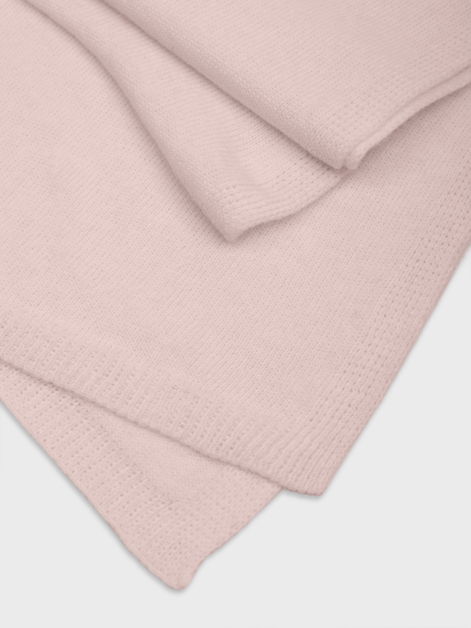 Широкий вязаный шарф светло-розового оттенка. Выполнен гладкой вязкой из миксовой пряжи с добавлением ангоры. Составит комплект с шапкой и перчатками из той же коллекции.