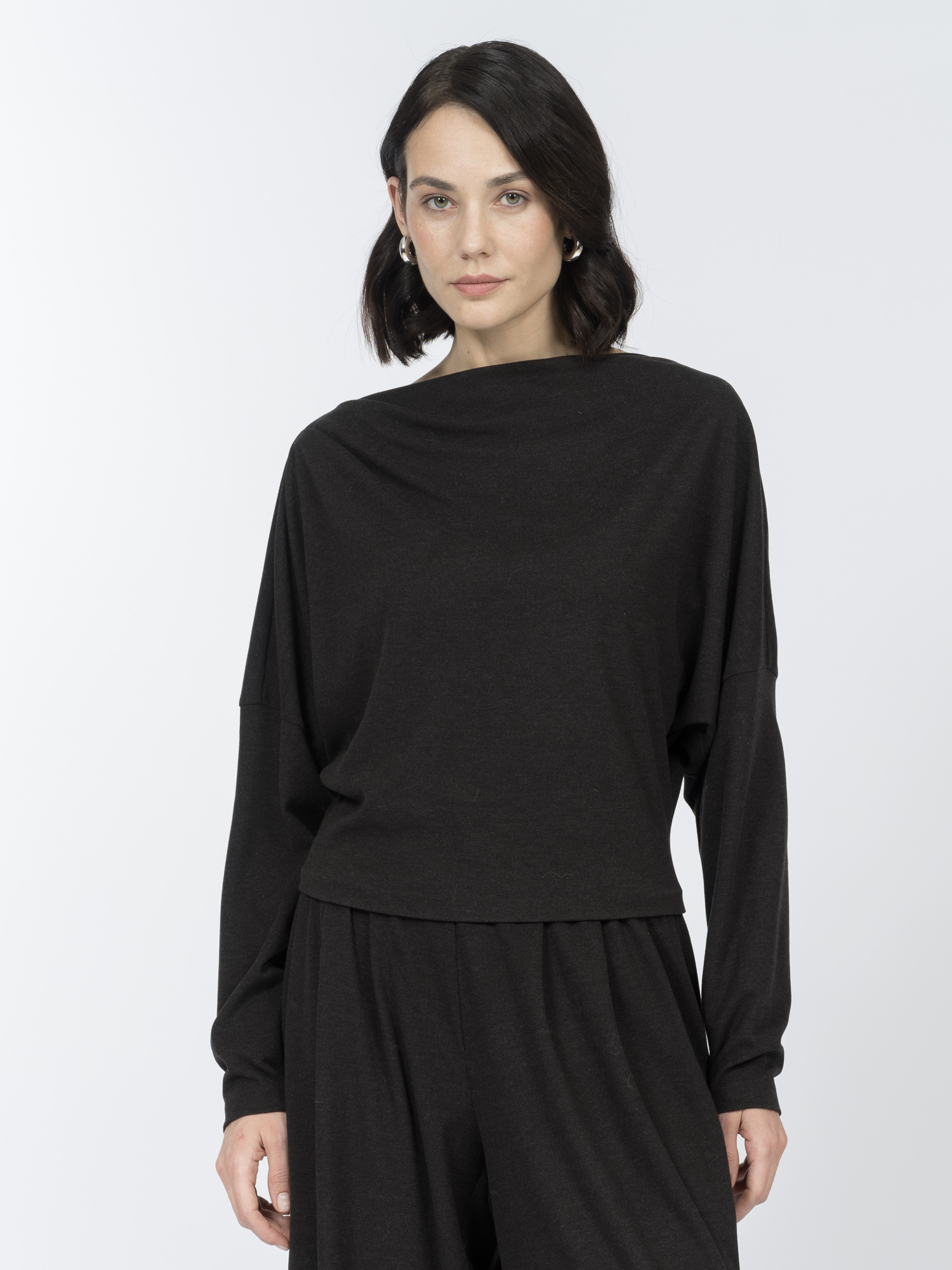Приталенная блуза с компактной драпировкой – идеальное сочетание стиля и комфорта. Выбрали для модели невероятно мягкий трикотаж, где вискоза дарит приятную легкость, полиэстер обеспечивает форму, а добавление овечьей шерсти и спандекса делает блузу уютной и эластичной.Складки на плечах и свободные рукава комбинированного кроя добавляют модели лёгкости и динамики. Укороченный приталенный крой подчёркивает силуэт.