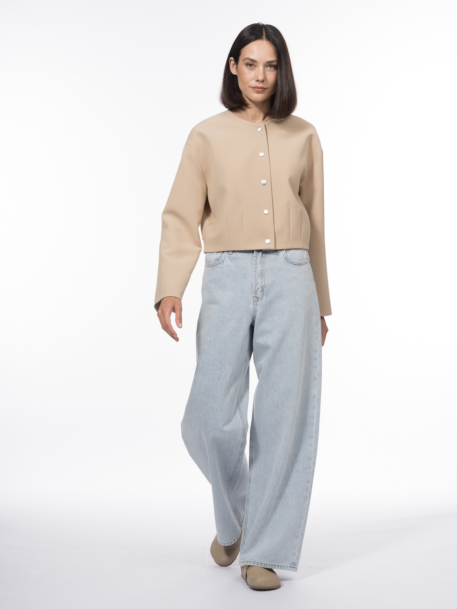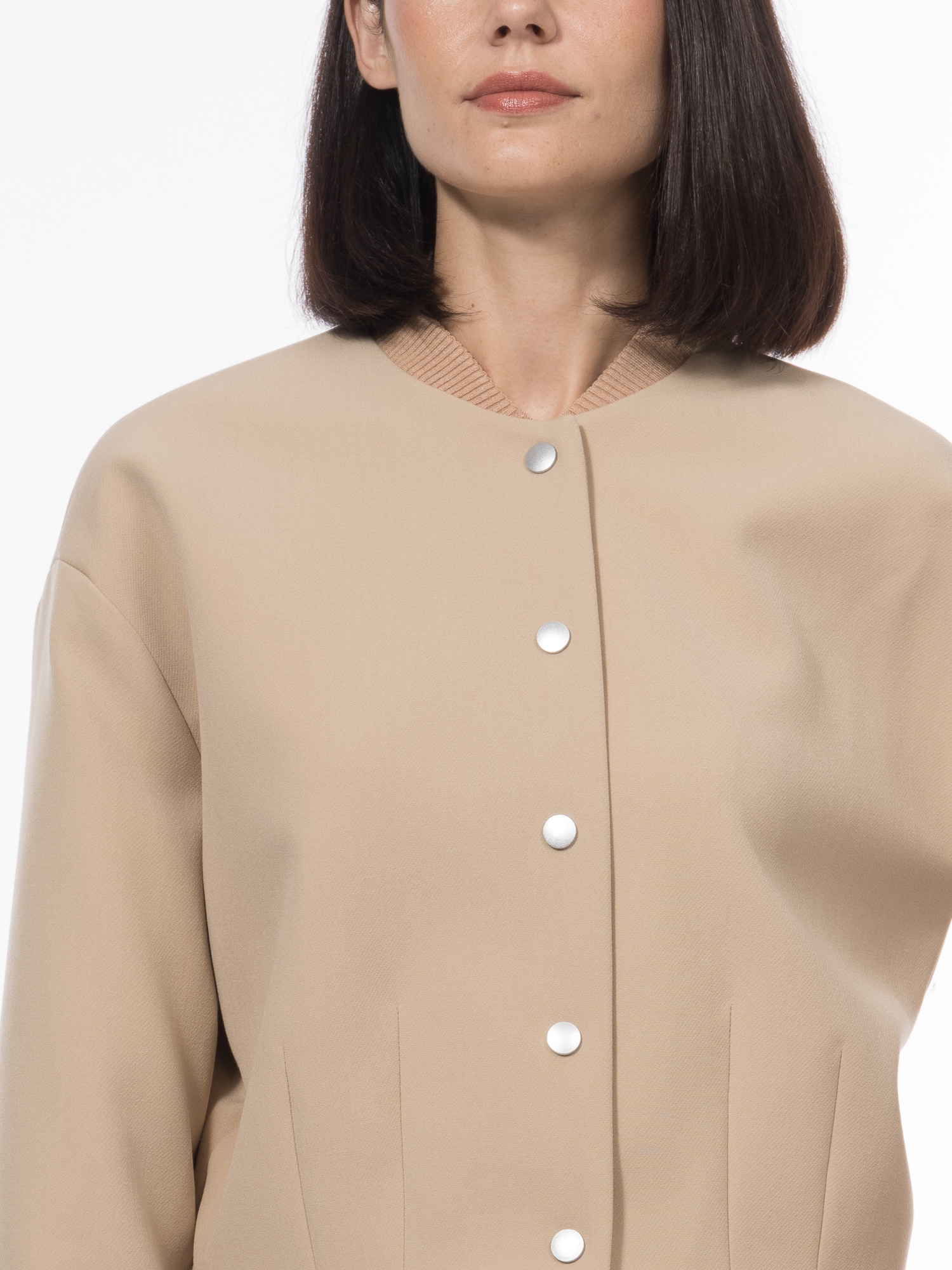 Песочно-бежевый оттенок Сафари, нейтральный и универсальный, сочетается с любыми оттенками, делая бомбер идеальным участником самых разных образов.