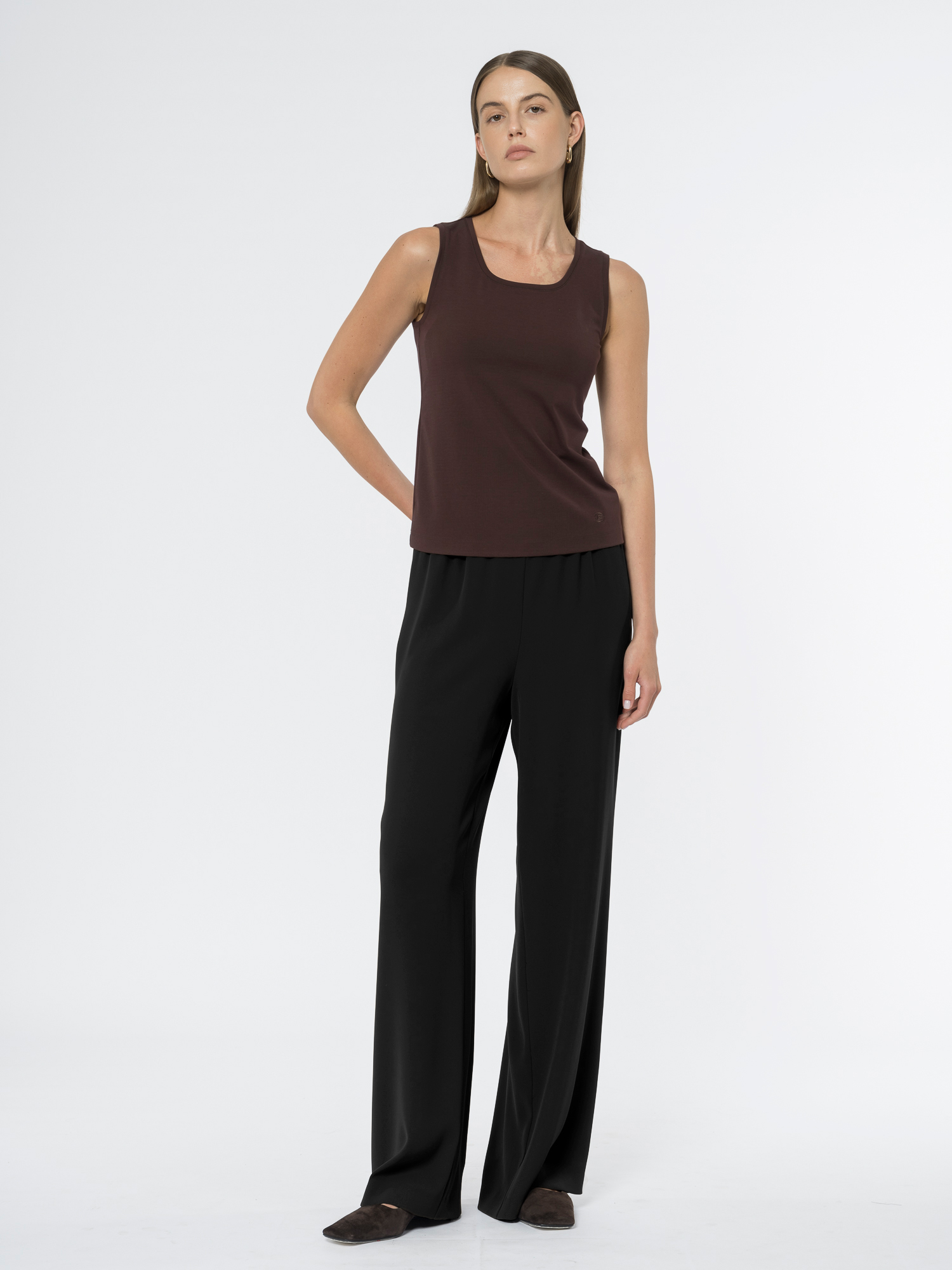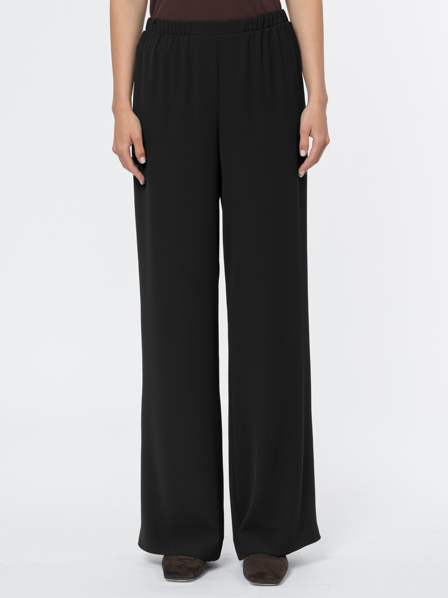 Брюки, лишенные вторичных деталей – универсальная модель для повседневной носки. Сшиты из высокотехнологичного полиэстера, который мягко струится при движении и сохраняет безупречный вид весь день.Прямой крой на удобной одинарной резинке обеспечивает комфортную посадку без лишних деталей. Абсолютная лаконичность делает эти брюки идеальной основой для любых образов.