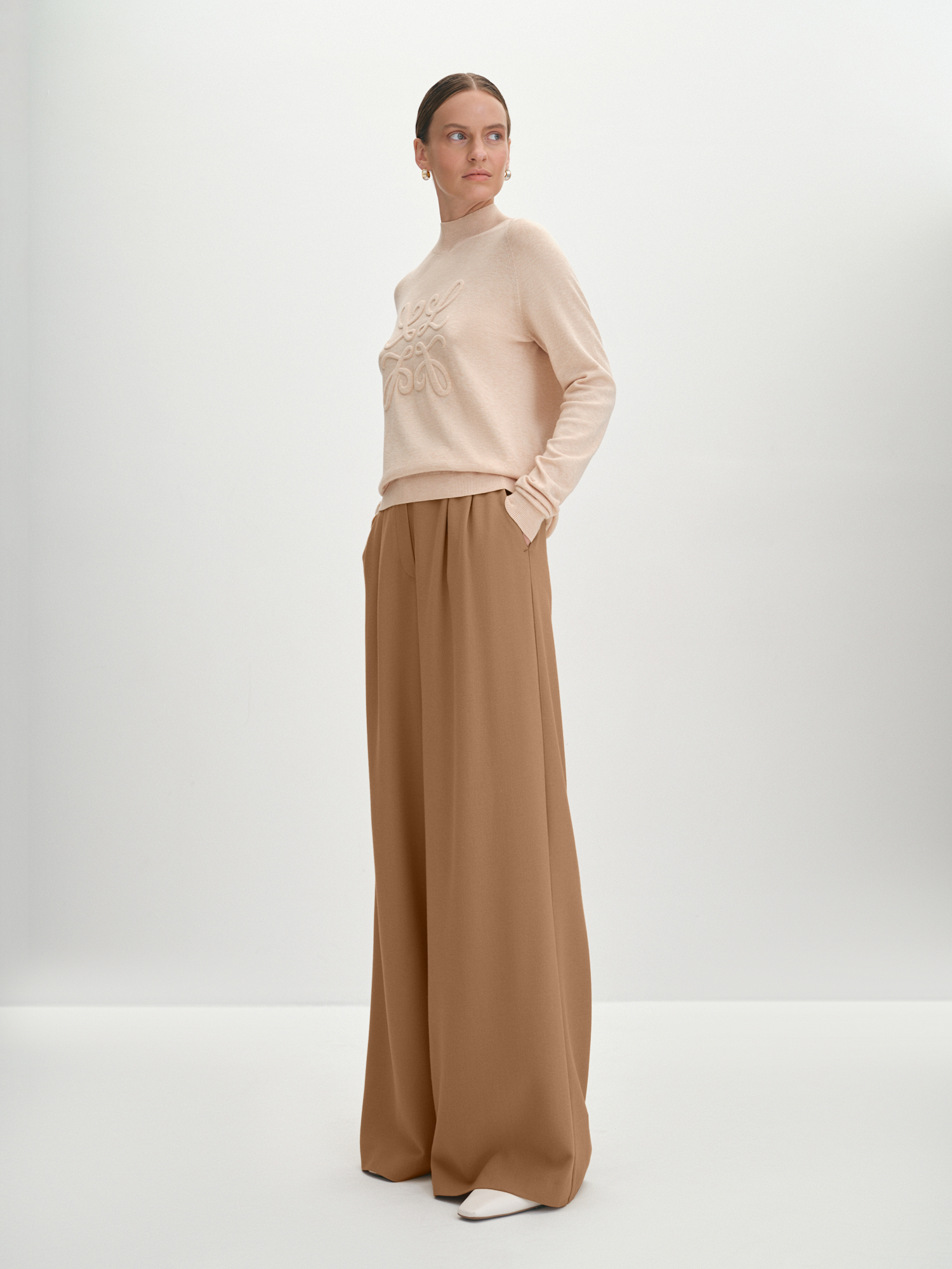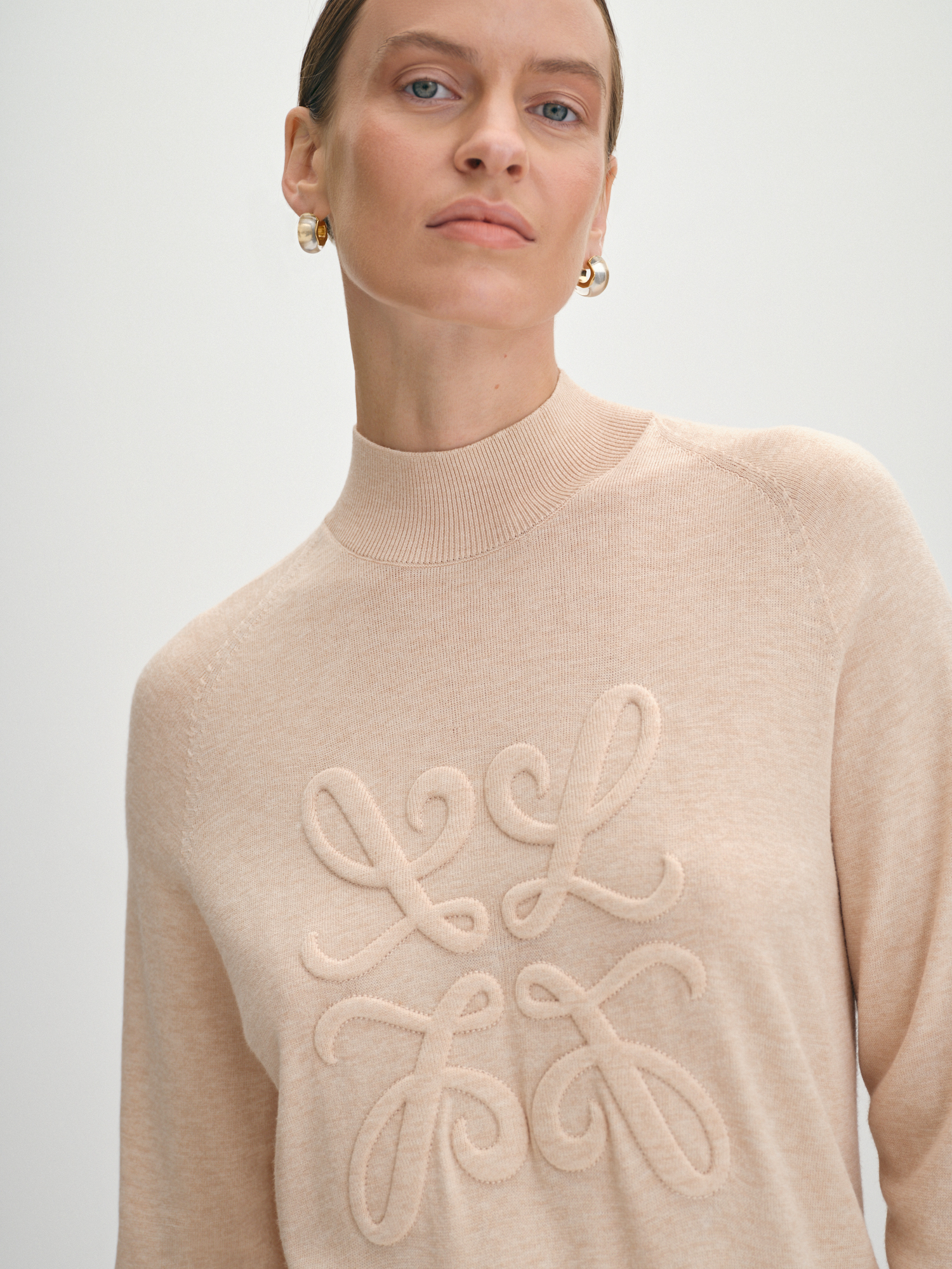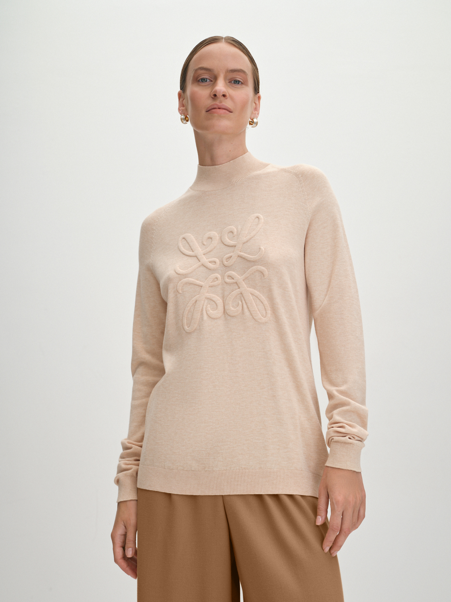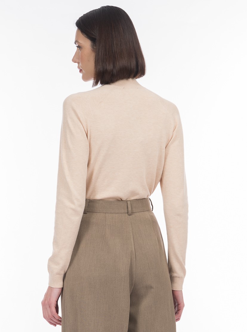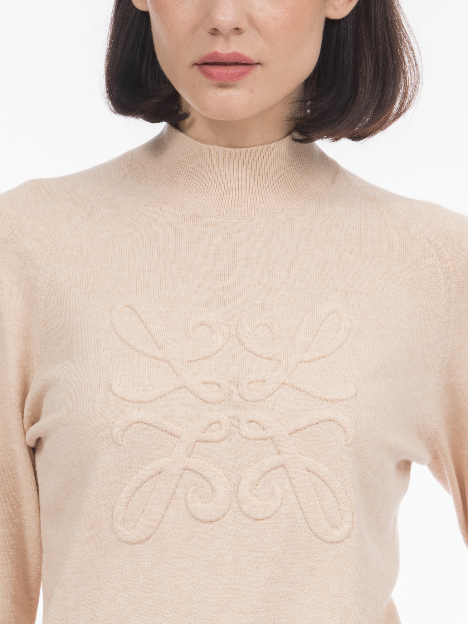 Цельновязаный джемпер среднего объема с резинкой по горловине, низу и манжетам. Для свитера с горлом использована качественная меланжевая пряжа из воздухопроницаемой вискозы.Тонкая комфортная водолазка в бежевом меланжевом будет востребована как школьная, офисная, нарядная, праздничная, базовая, осенняя, зимняя.