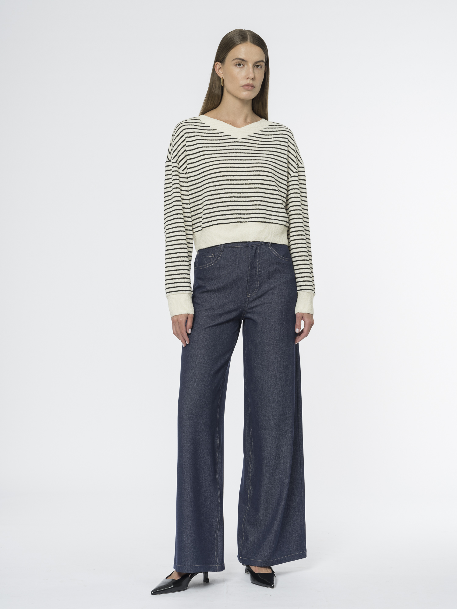 Завершить образ с пятикарманниками можно свитшотом с подвязами BS0070K.