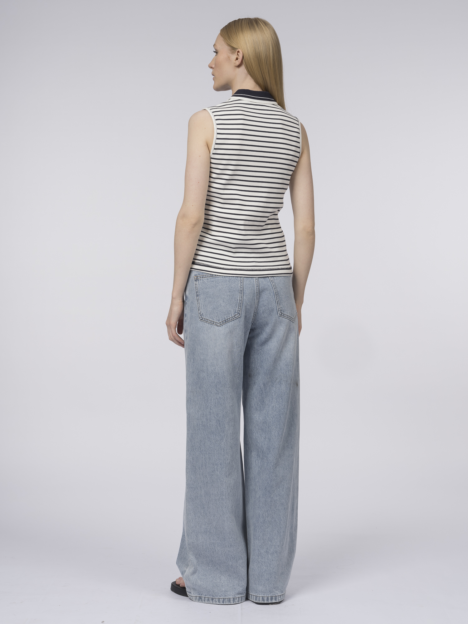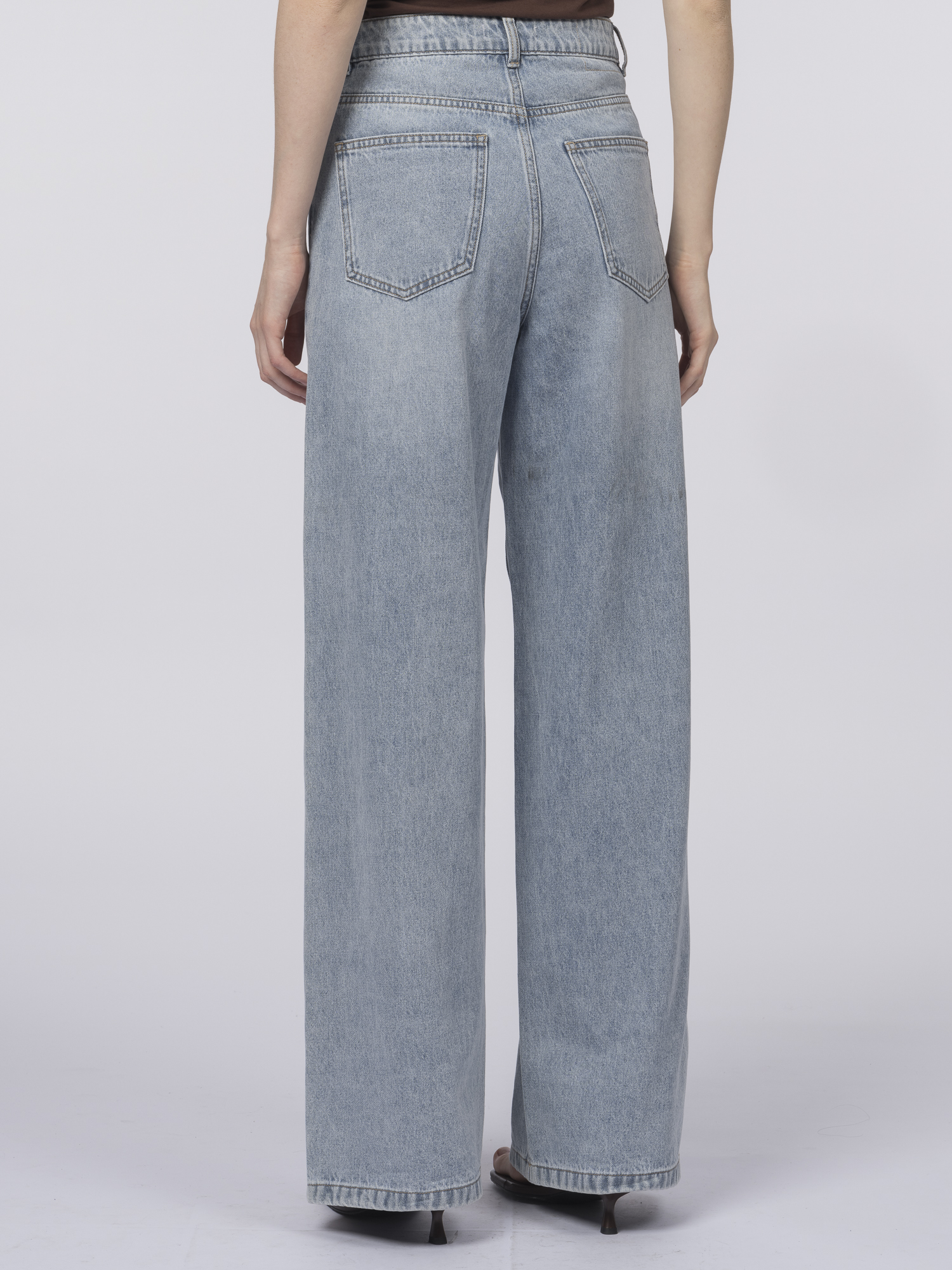Широкие прямые джинсы - одна из составляющих базового гардероба. Высокая удобная посадка, застежка на молнию и пуговицу-болт, пять традиционных карманов и кокетка - идеальная модель для повседневной носки и нестрогого офиса.Выбрали для джинсов хлопковый деним, легкая варка и потертости придают модели индивидуальность.