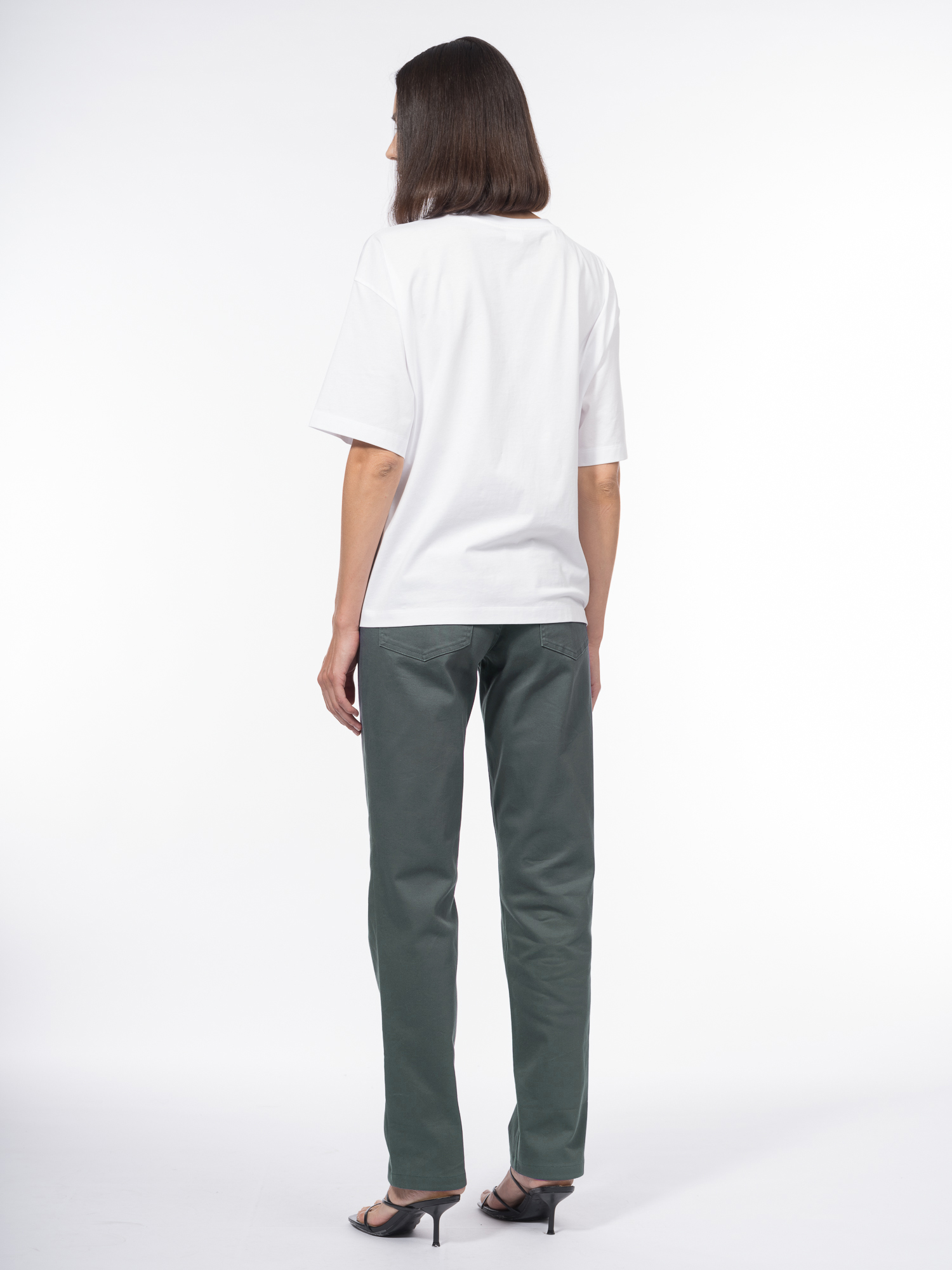 Для создания футболки был выбран универсальный белый цвет, который легко комбинируется с различными низами и аксессуарами.