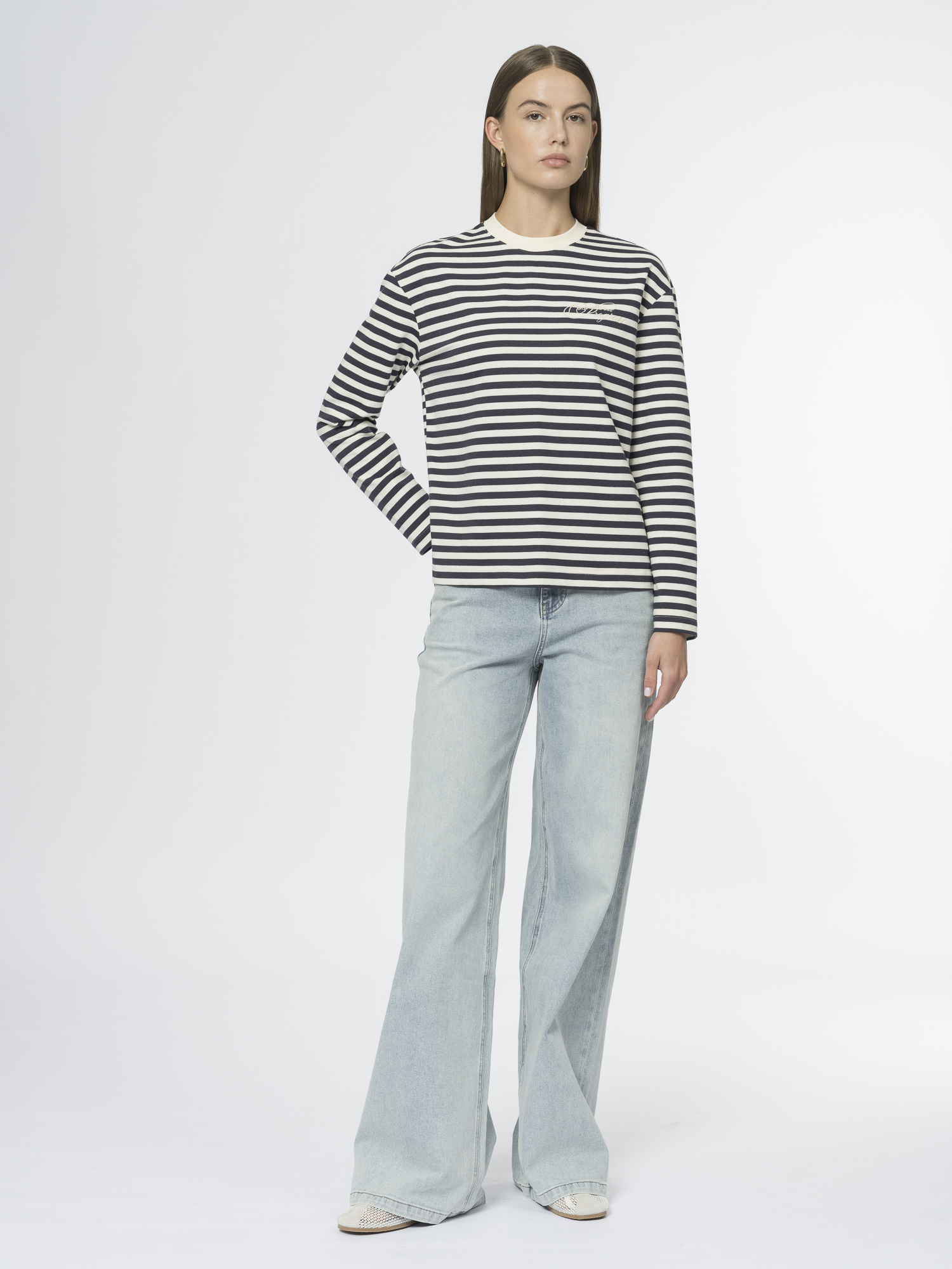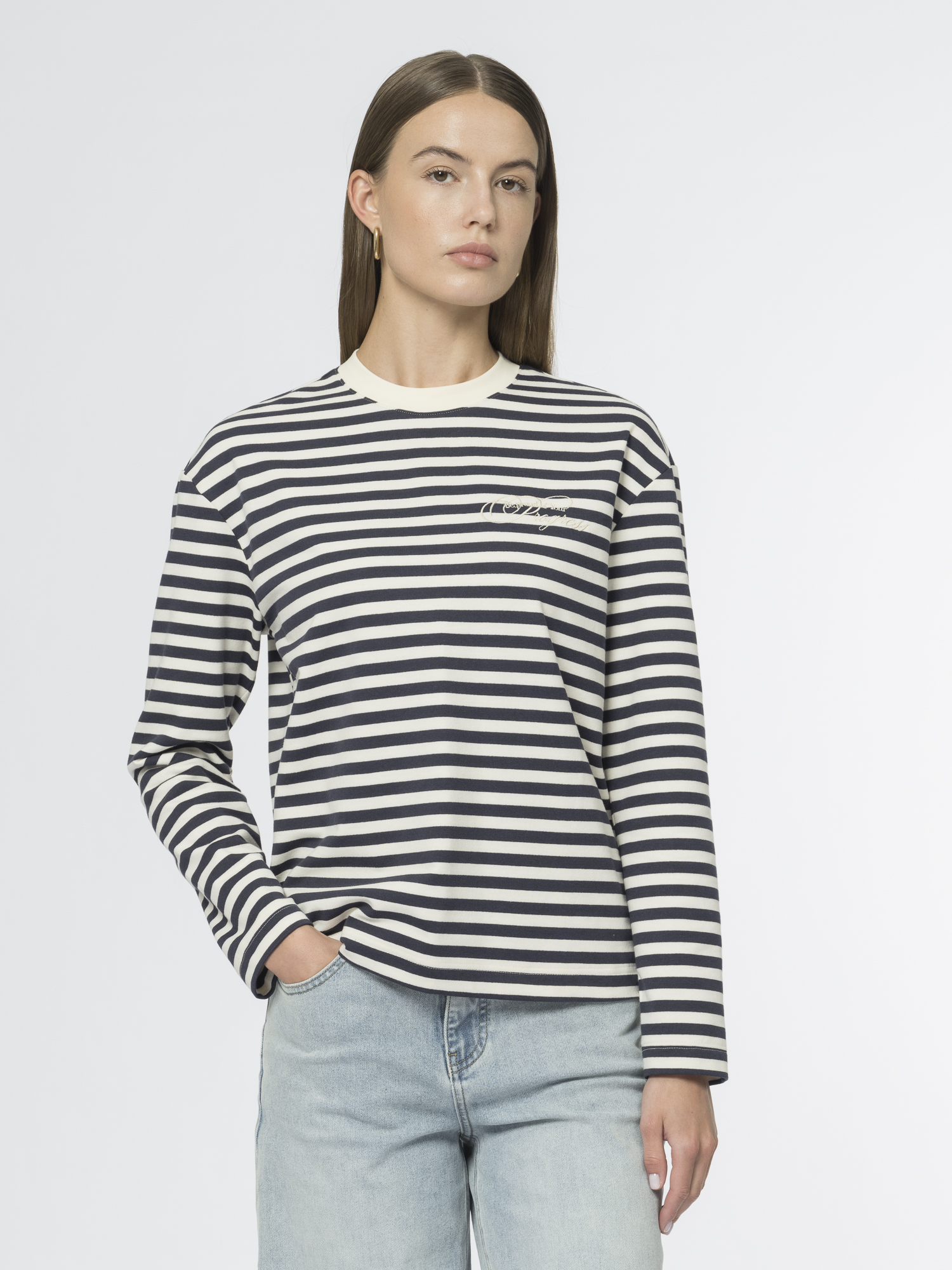 Бело-синий лонгслив в полоску — невероятно комфортен и напоминает о французском стиле. Прямой крой, спущенное плечо и длинные рукава формируют силуэт слегка увеличенного объема, а аккуратная отделка горловины трикотажем в рубчик добавляет модели завершённости.Выбрали для лонгслива мягкий хлопковый трикотаж, приятный к телу, дышащий и сохраняющий форму благодаря добавлению полиэстера и спандекса. Особый шарм придаёт изящная вышивка, выполненная на высокоточном вышивальном оборудовании и делающая модель уникальной.