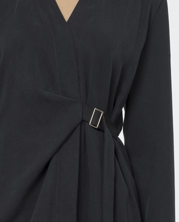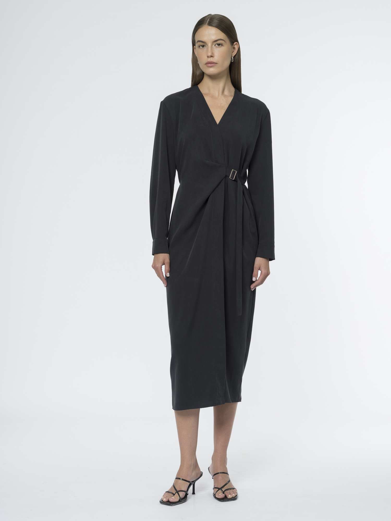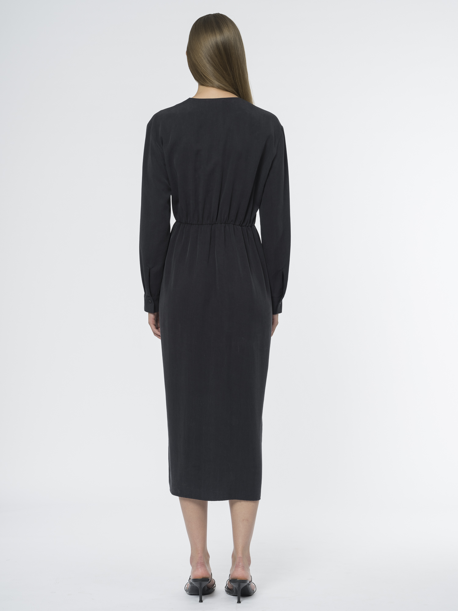 Платье с элегантным запахом – идеальный вариант для создания женственного образа. Сшито из нежного шелковистого лиоцелла, который приятно облегает фигуру и дарит ощущение комфорта весь день.Глубокий V-вырез и фиксированный запах добавляют образу лёгкую соблазнительность, а резинка на спинке подчёркивает талию. Длинные рукава со спущенным плечом создают непринуждённый силуэт.