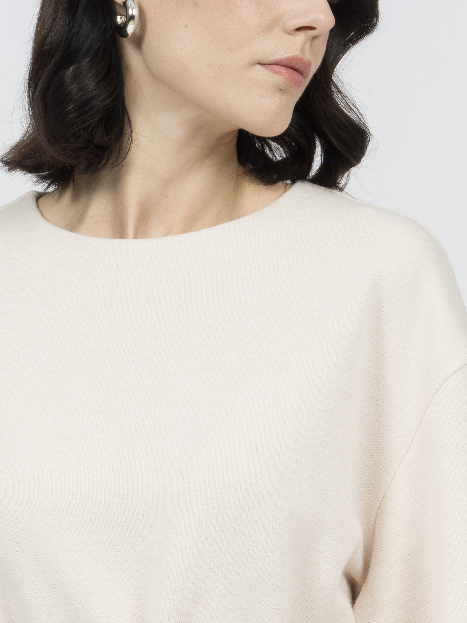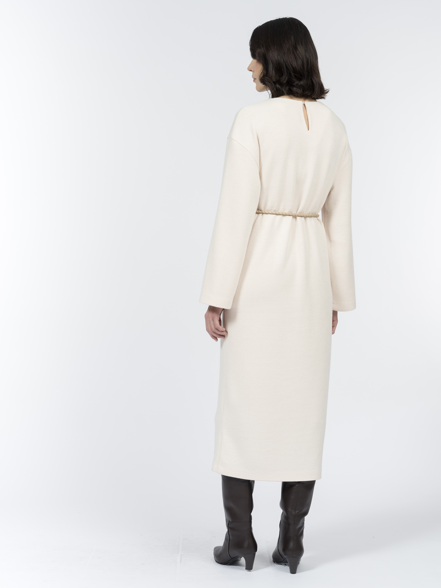 Нежный молочно-бежевый цвет "кокосовое молоко" делает платье универсальным и выгодно оттеняет цвет лица. Модель можно носить с ботинками, кроссовками, лоферами или туфлями.
