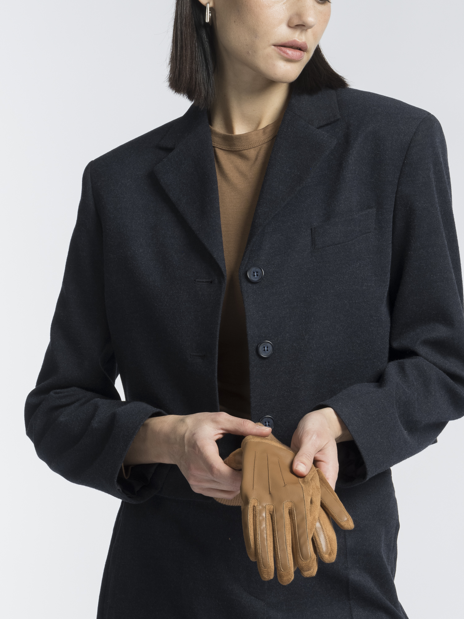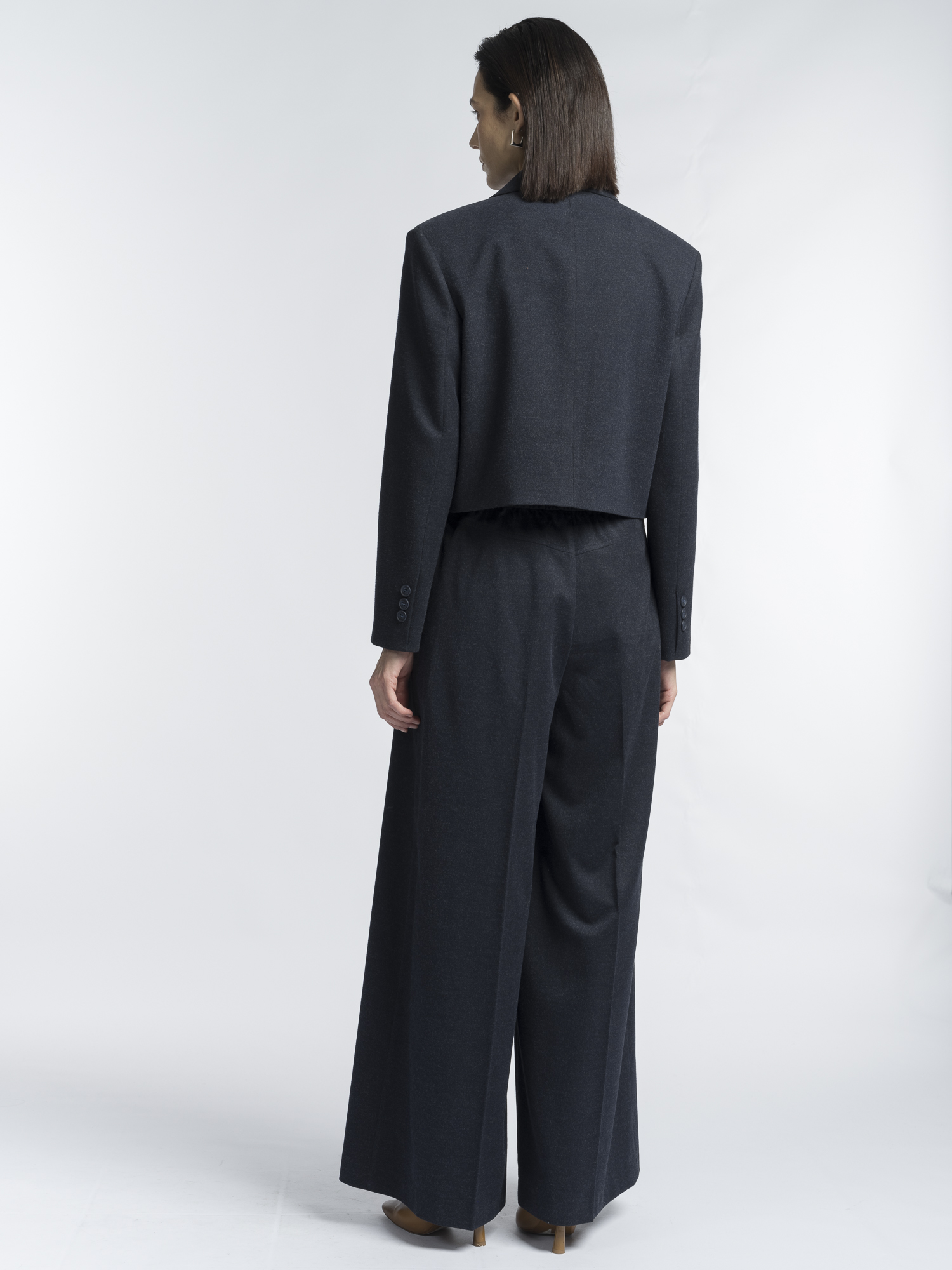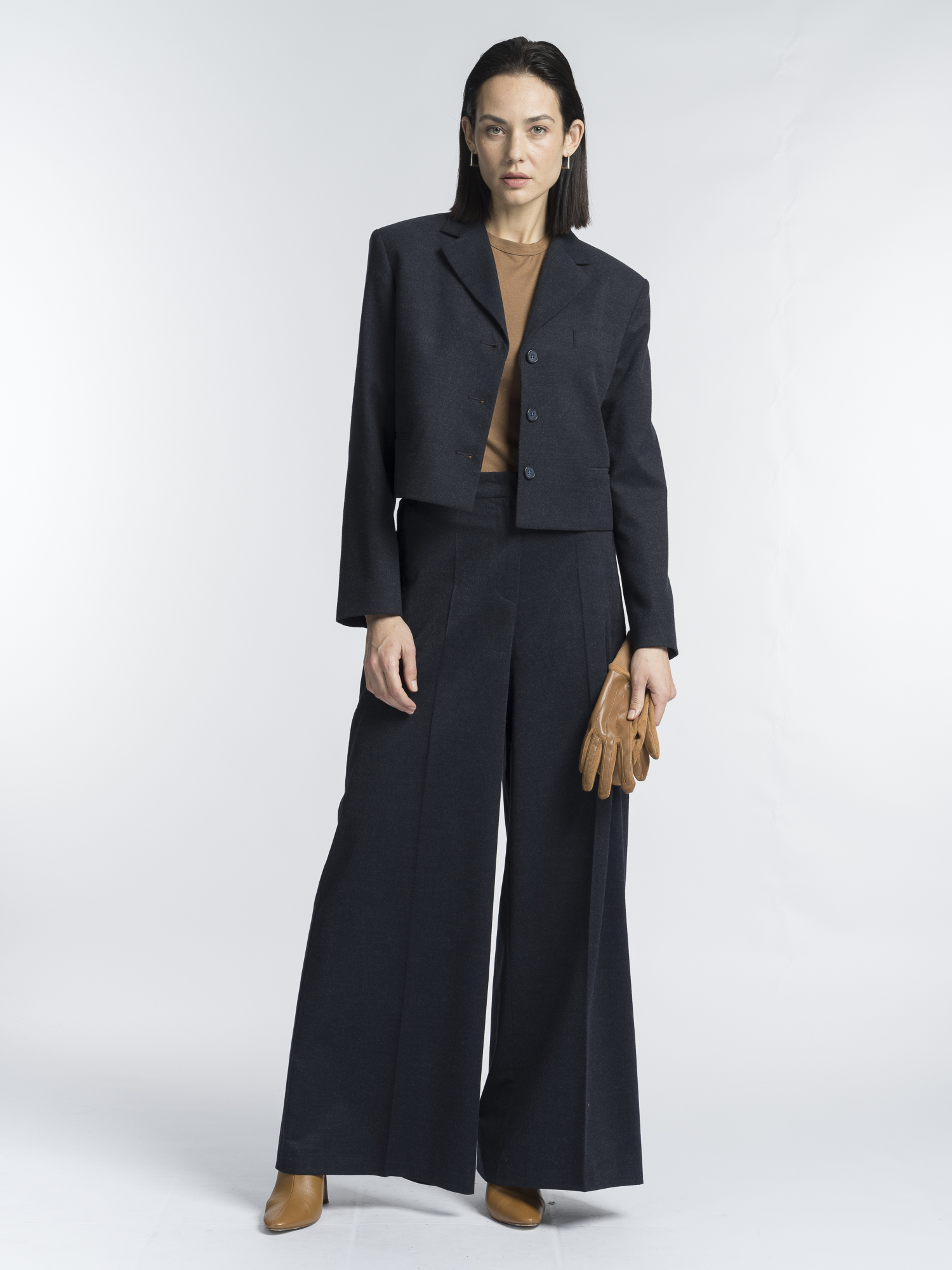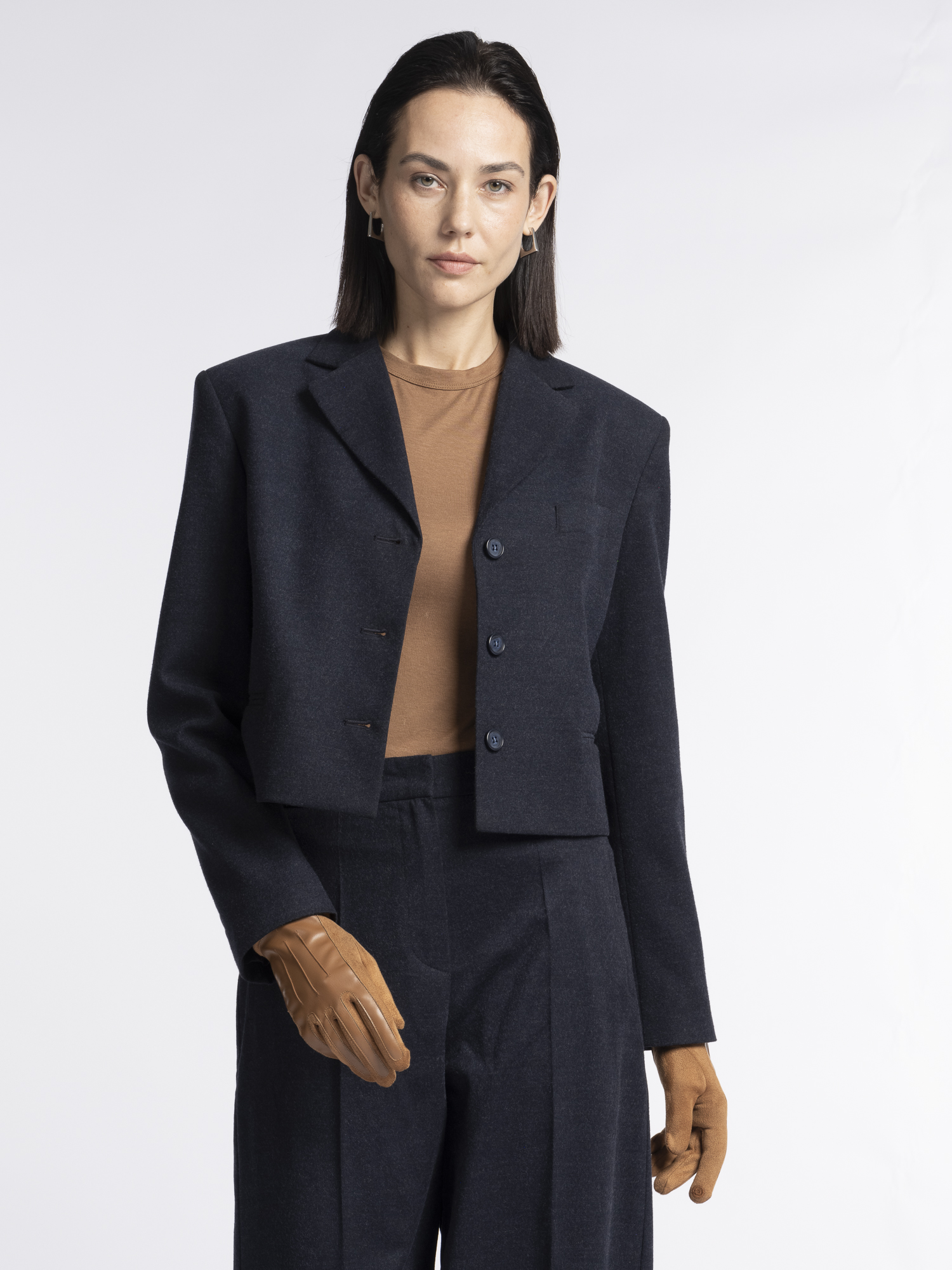 Тёмно-синий меланжевый цвет делает пиджак универсальным. Его можно носить с брюками TR0627, юбкой SK0607 или джинсами для офиса, встреч и каждодневных образов.