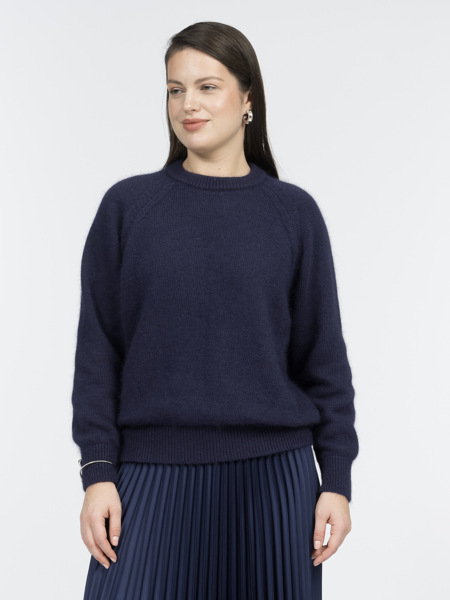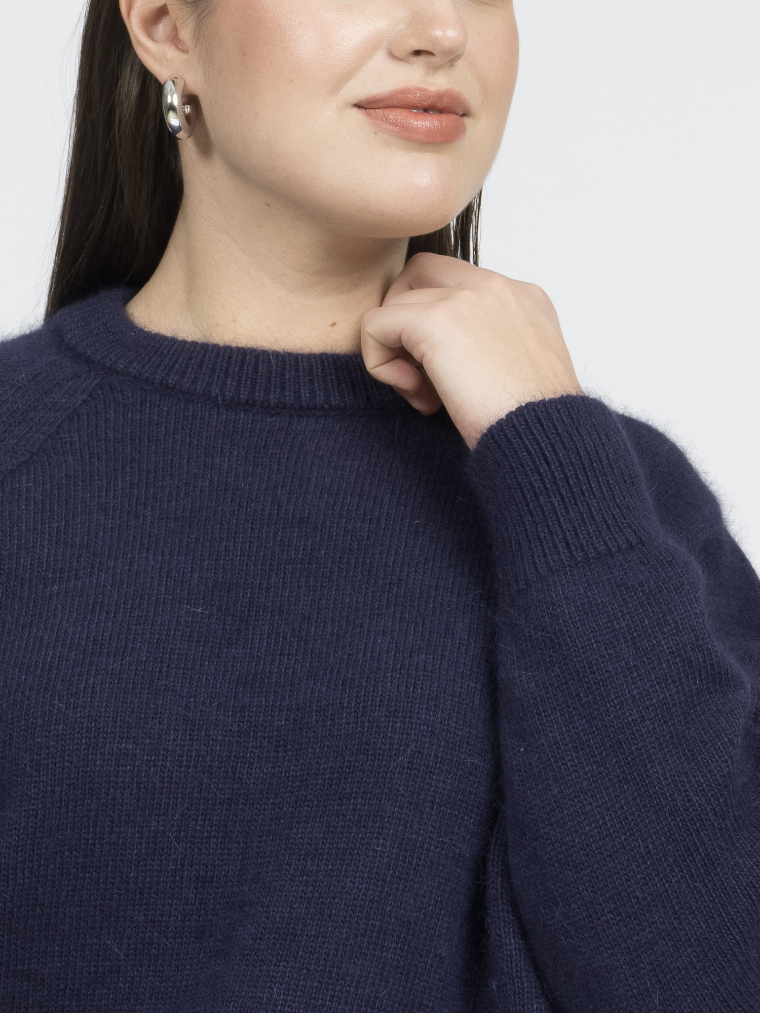 Джемпер связан из пряжи, в которой мягкая ангора демонстрирует свои лучшие качества в сочетании с прочным нейлоном. Ангора обеспечивает невесомую легкость и усиленные теплоизоляционные свойства. Нейлон добавляет прочность, эластичность и предотвращает деформацию при носке.Рукав-реглан смягчает линию плеча, а его наружные швы добавляют необычный акцент. Использование высокоточного оборудования гарантирует качество исполнения. Особые эластичные соединения деталей делают джемпер невероятно комфортным и уютным.