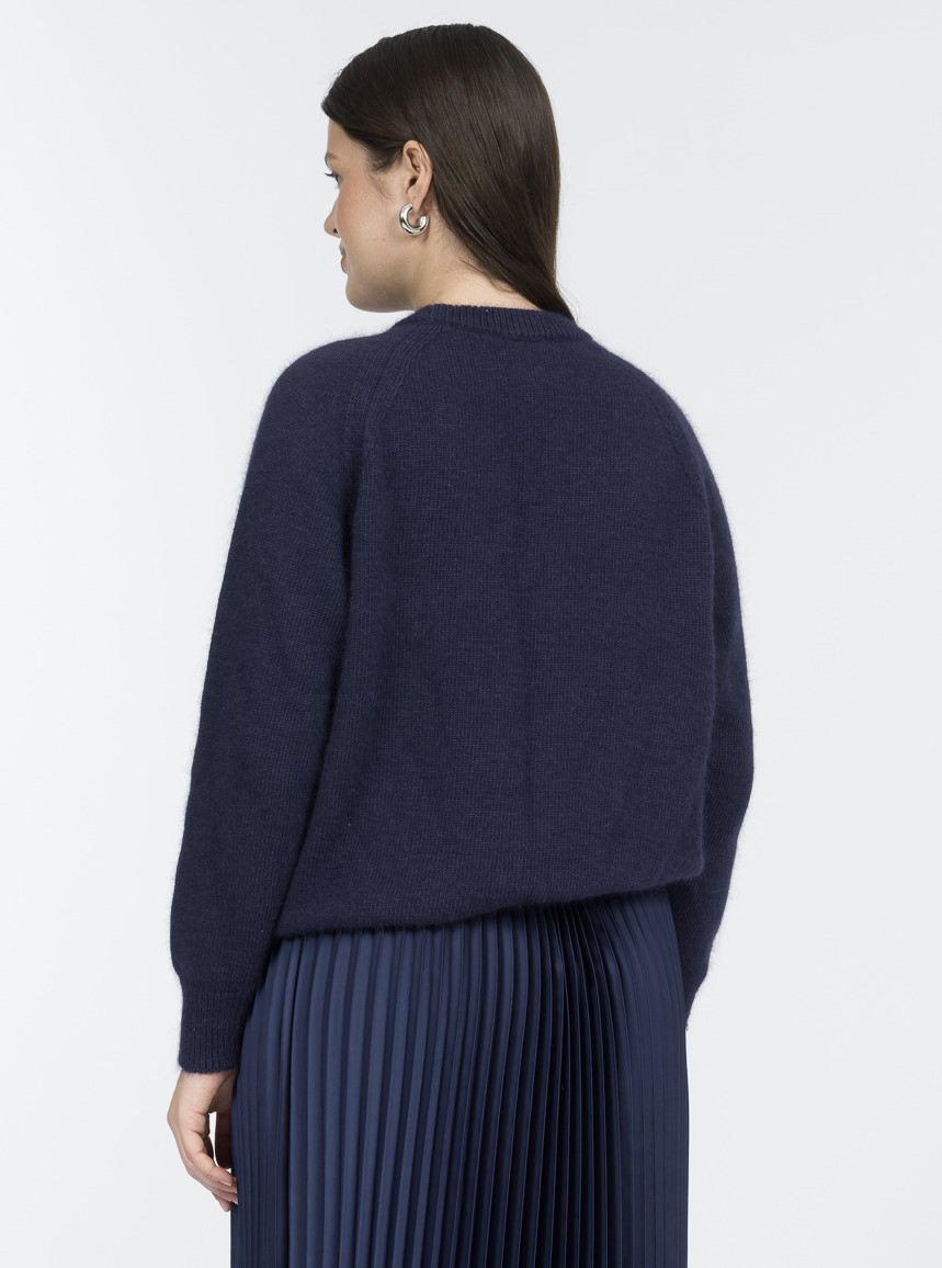 Джемпер в таинственном темно-синем прекрасно сочетается с юбкой SK0591 и подойдет для деловой встречи, офиса, прогулки.