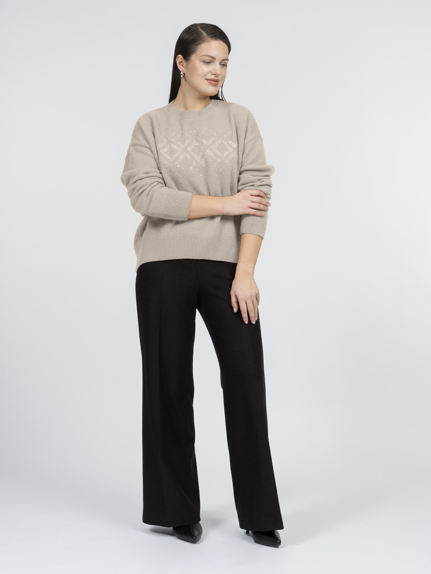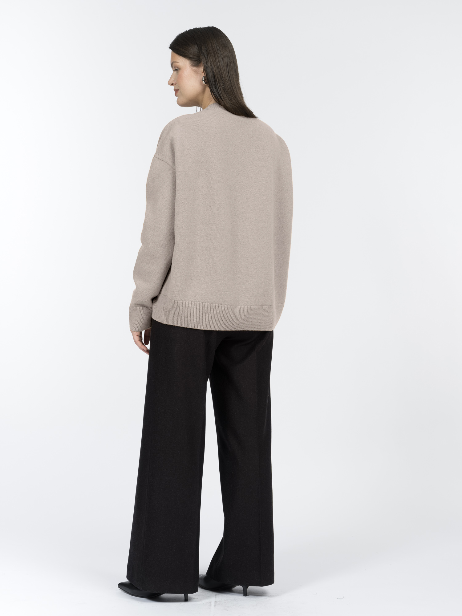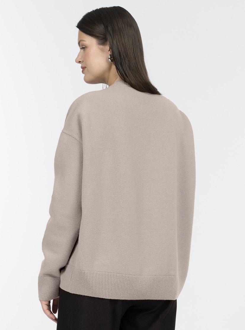 Деликатный бежевый меланж делает джемпер актуальным и универсальным в сочетаниях. Его можно носить с джинсами, брюками или юбками из коллекции.