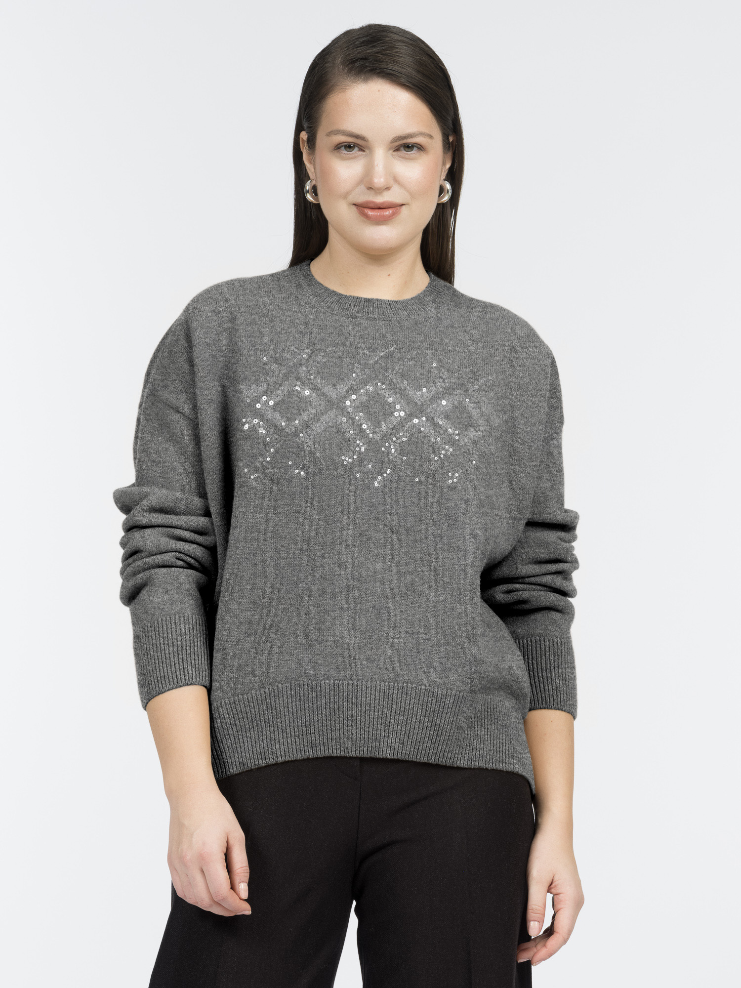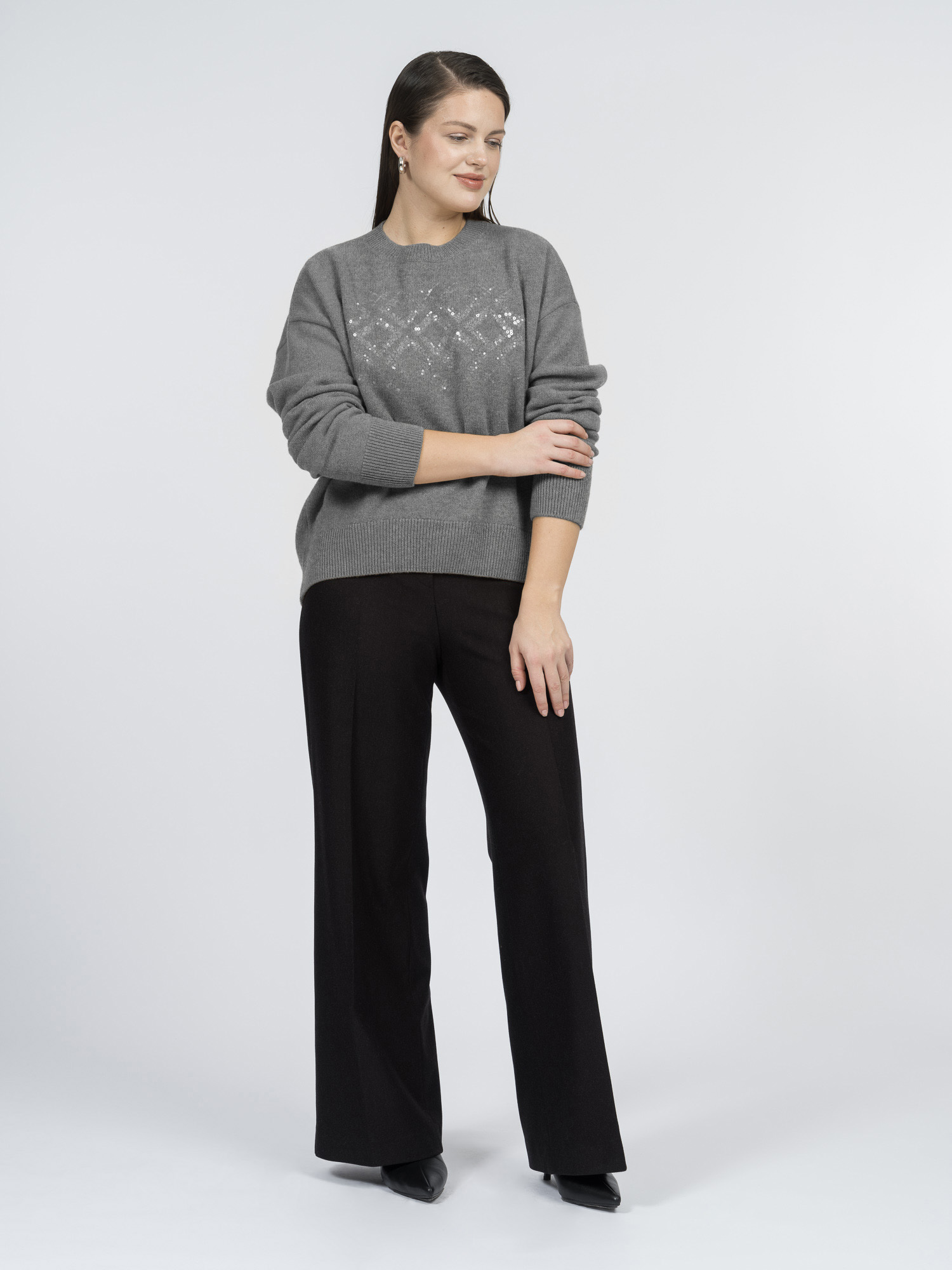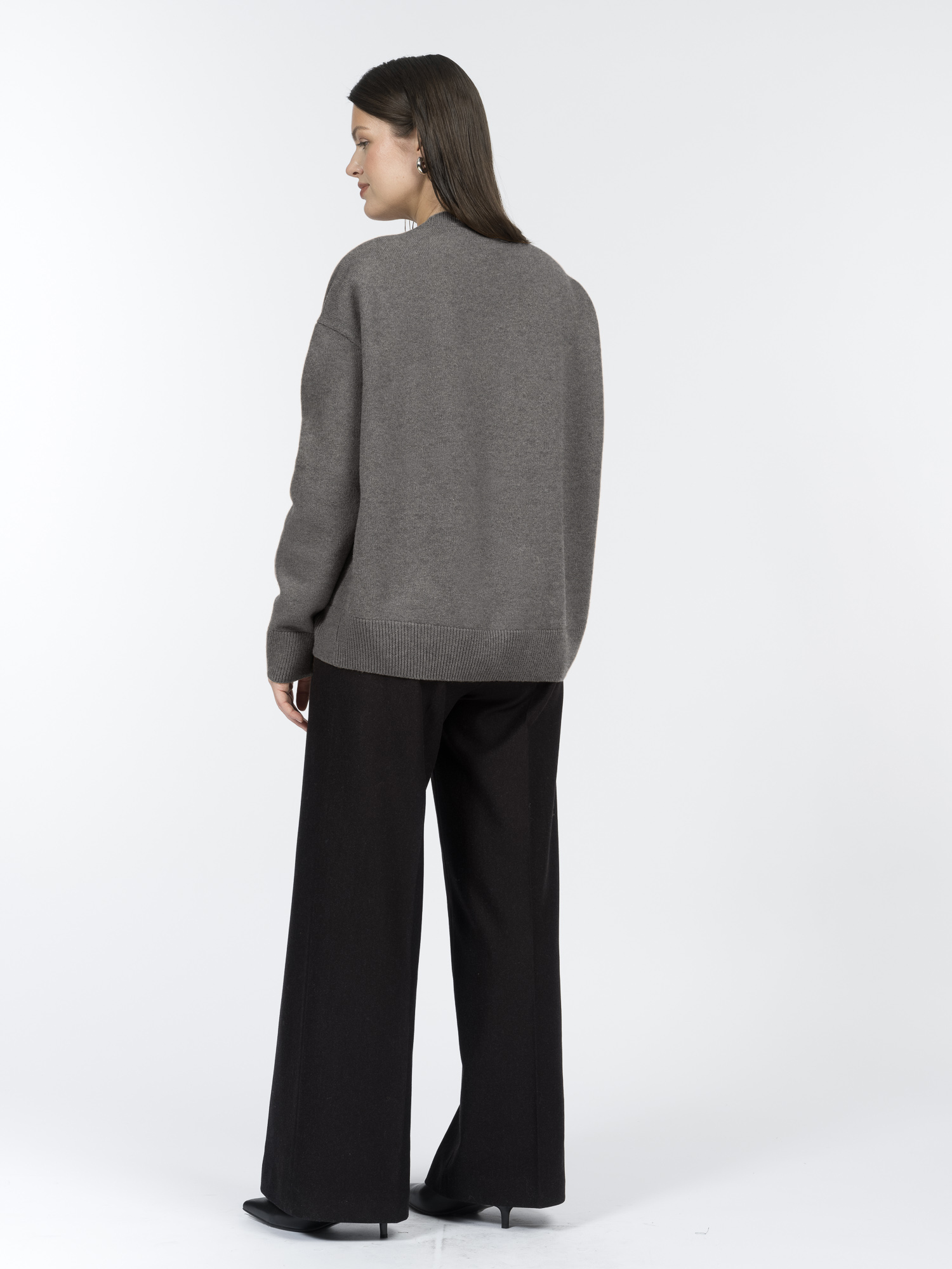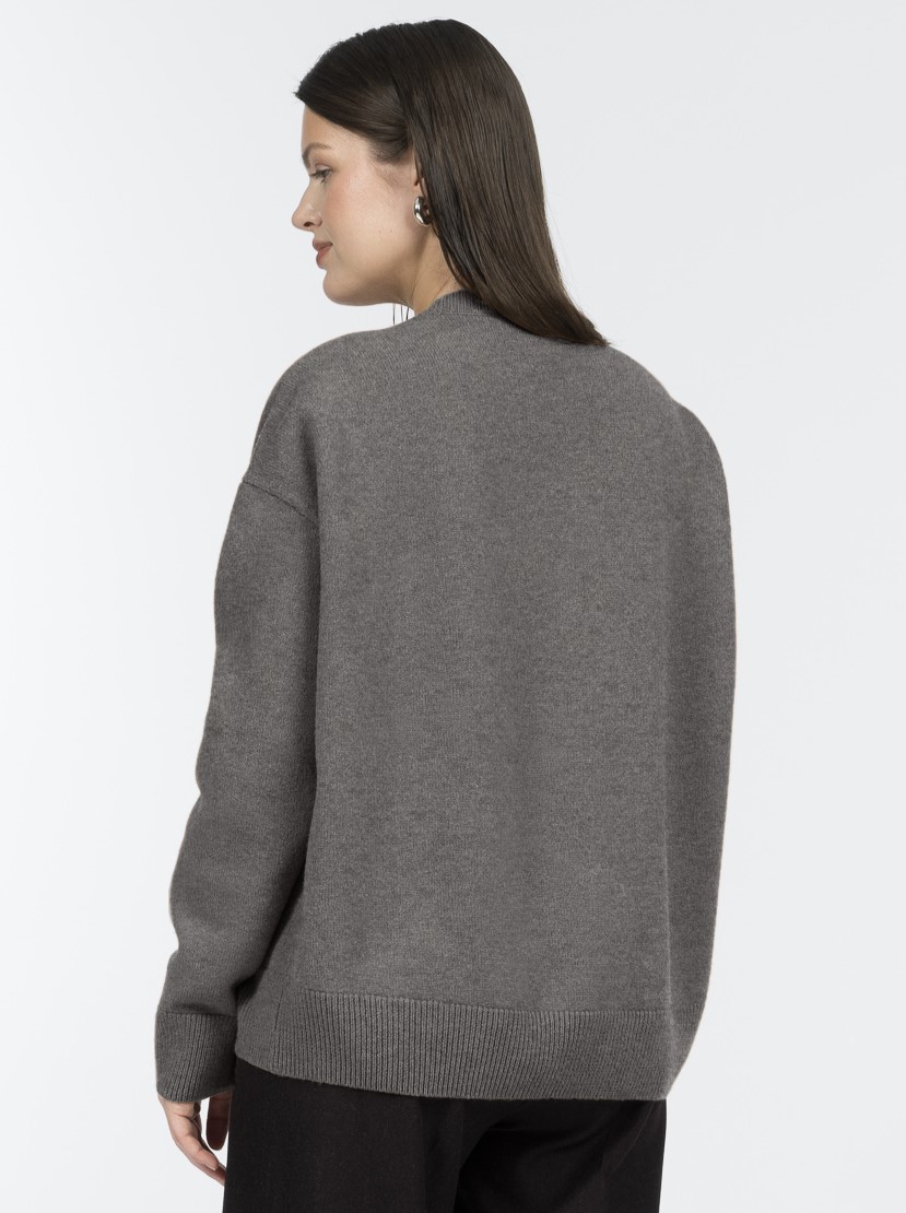 Благородный серый в графитовом оттенке делает джемпер универсальным в сочетаниях. Его можно носить с джинсами, брюками или юбками из коллекции.
