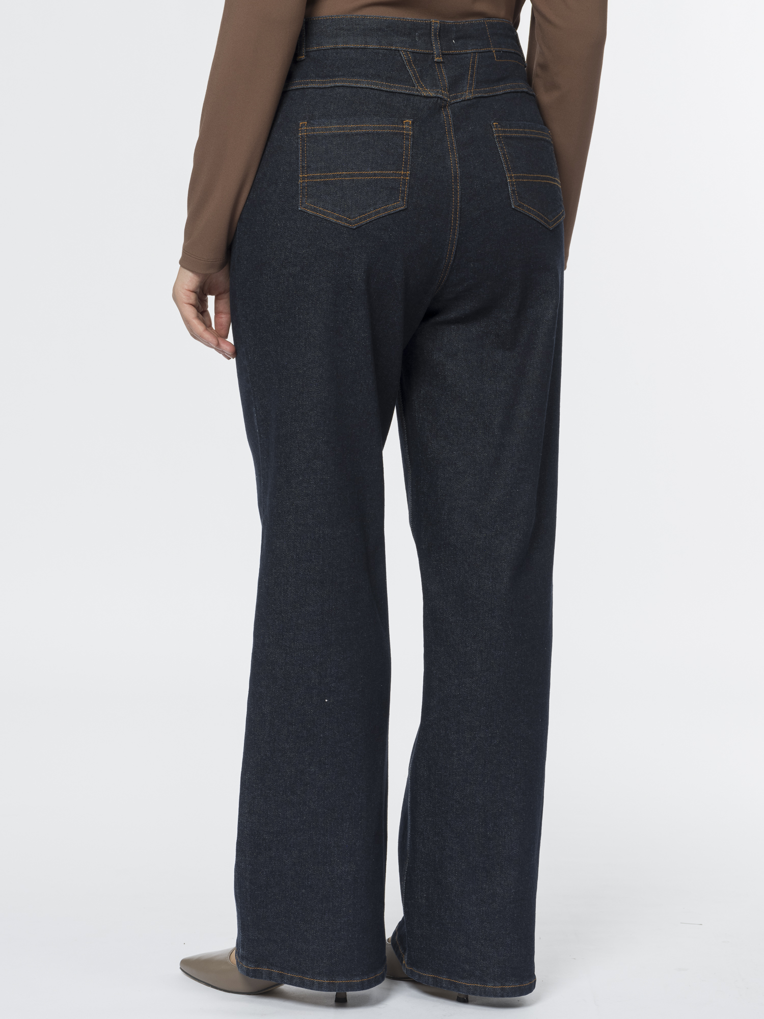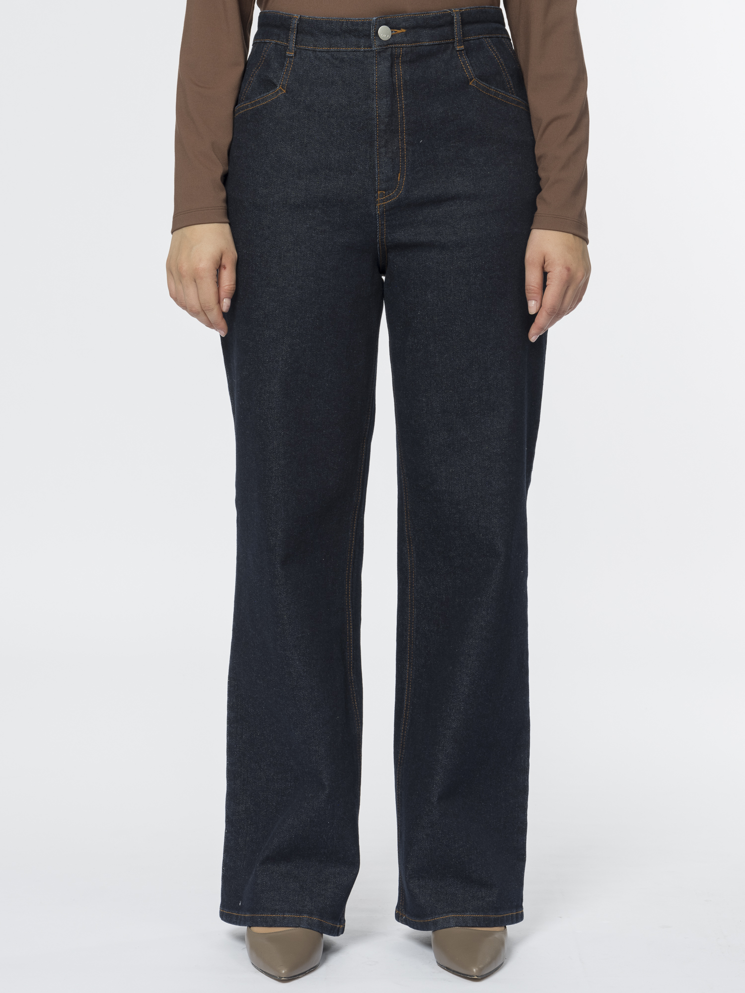 Широкие прямые джинсы regular fit с высокой талией - одна из составляющих базового гардероба. Высокая удобная посадка, застежка на молнию и болт и плоская кокетка - это идеальная модель для повседневной носки и офисного кэжуала.Выбрали для джинсов хлопковый деним с добавлением спандекса. Его уникальность - в отсутствии варки, такой "сырой" деним служит сырьем для моделей, со временем приобретающих индивидуальные черты.